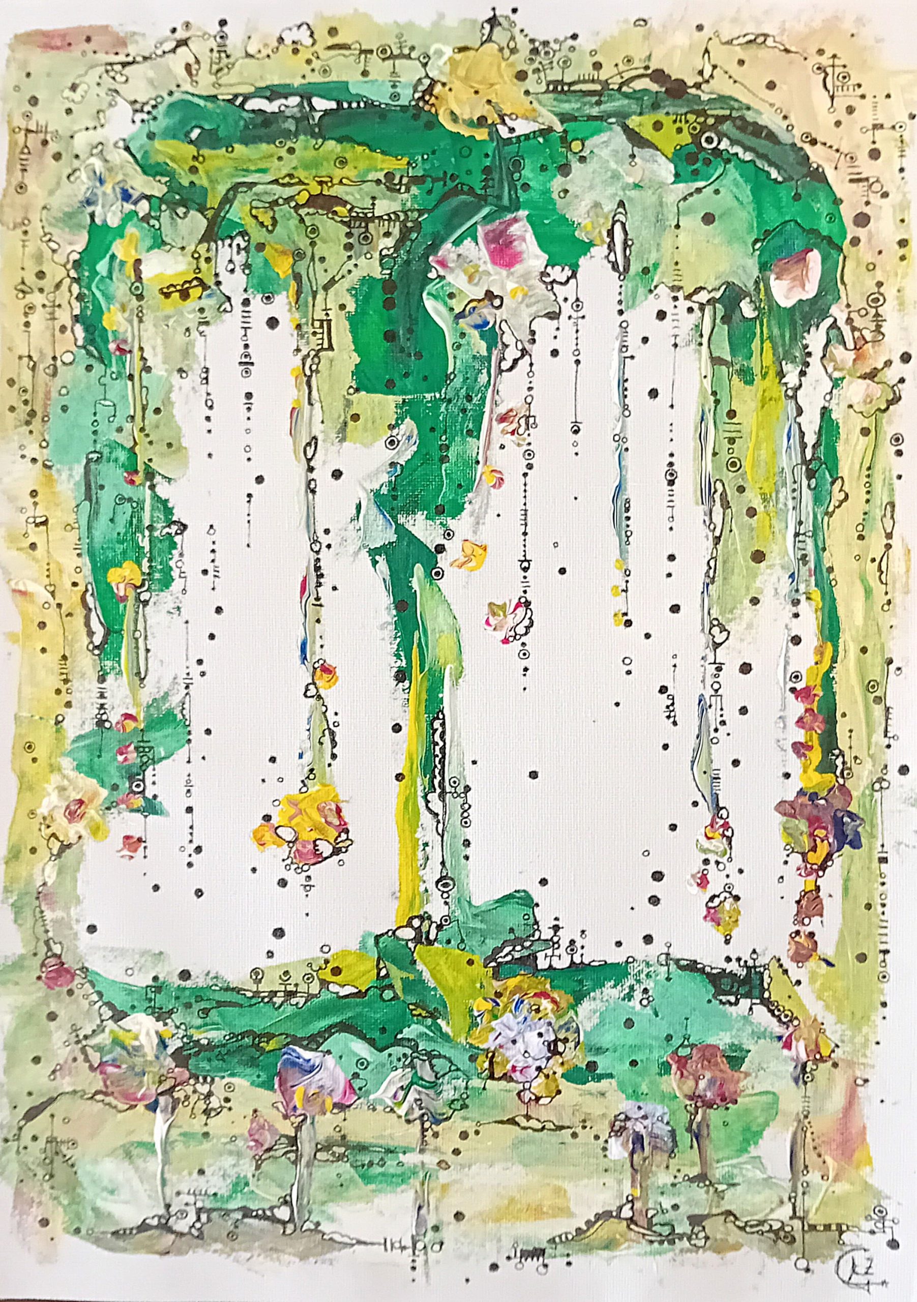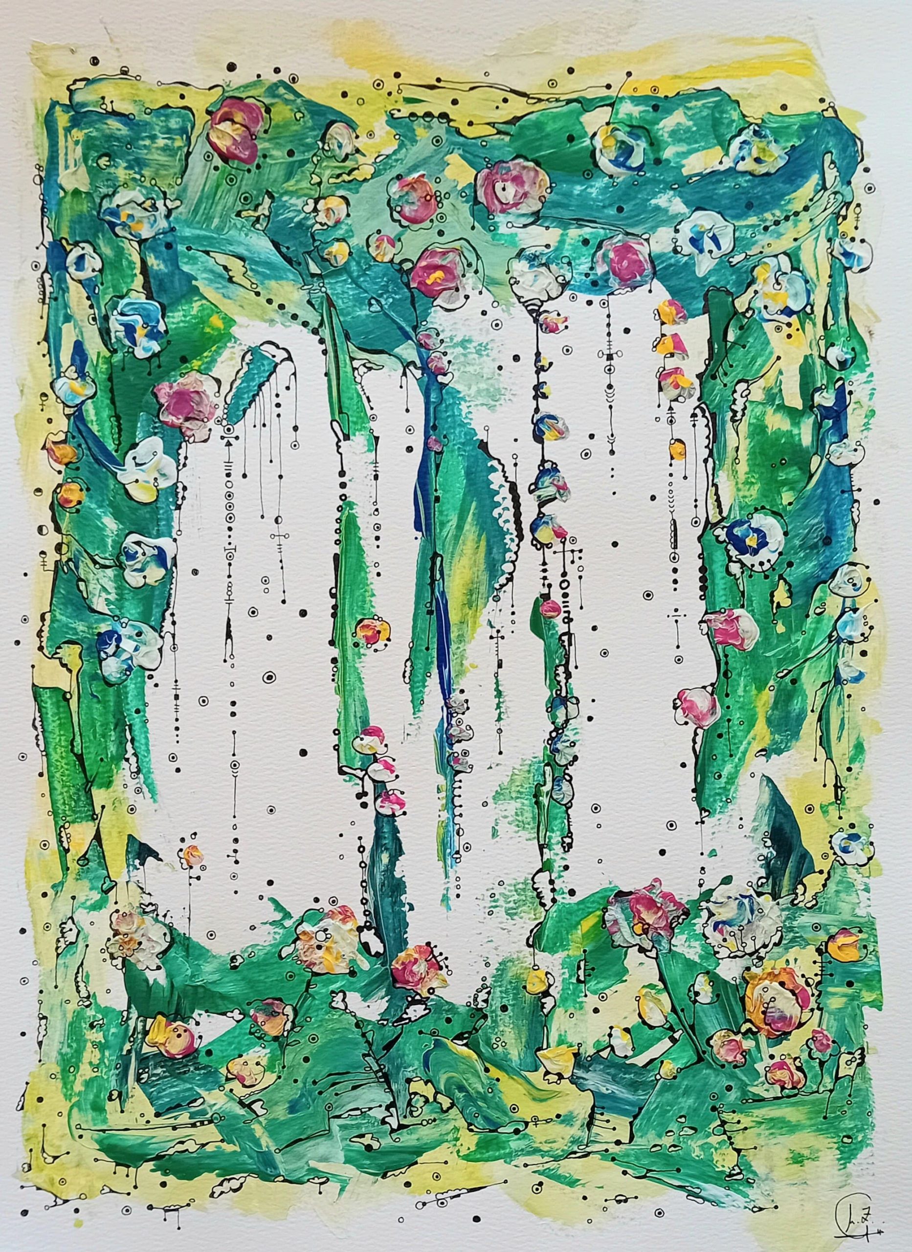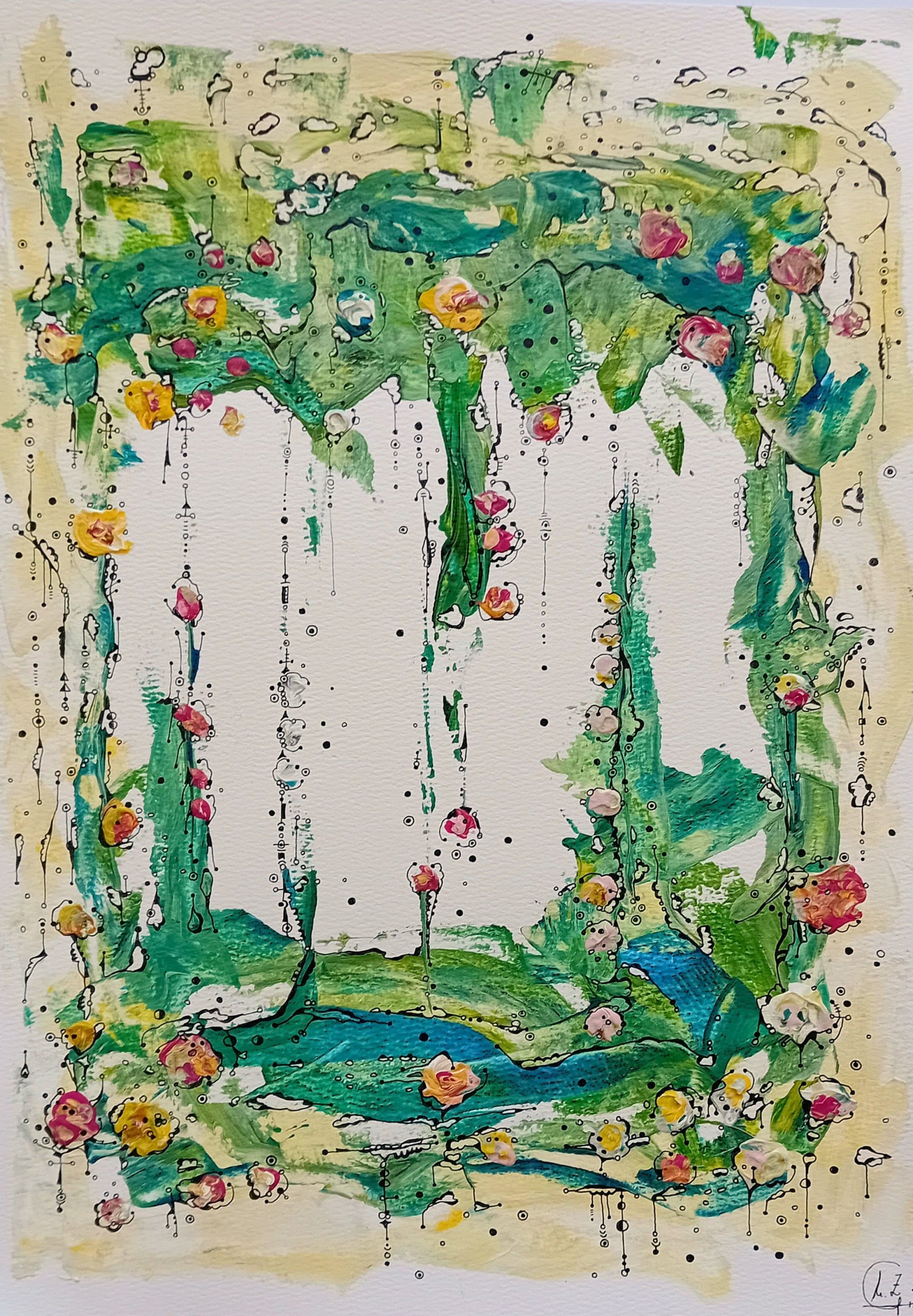 Representa la belleza de la vida, el amor, el bienestar. La naturaleza representada a través de un jardín repleto de flores y vegetación, un Edén. Evoca la idea de un espacio de crecimiento y vida, similar a los Jardines Colgantes de Babilonia, que eran símbolos de belleza y armonía. Te invita a estar en un estado de equilibrio y conexión con el mundo natural y espiritual. Invita a la contemplación y a la meditación. Los códigos y símbolos presentes en la obra, emiten frecuencias vibracionales para equilibrarte y conectarte con todo lo bello y la alegria de vivir.
